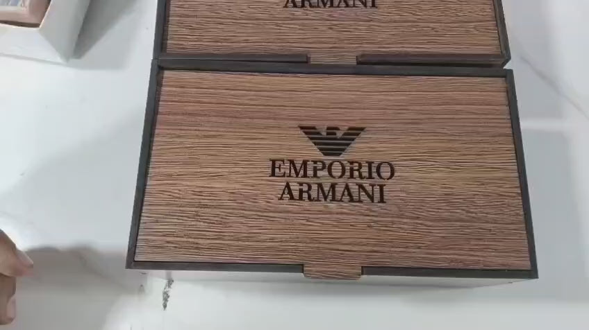The Stylectra™ Emporio Armani Complete Gift Set includes a stylish Emporio Armani men’s watch, a premium leather wallet, and a beautiful wooden gift box — making it the ultimate package for someone special.